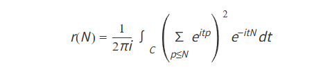 其中,C 是复平面上的一个圆周,p 是质数。r (N) 表示将偶数 N 表示为两个质数之和的个数。如果能证明对于所有大于 2 的偶数 N,r (N) > 0,那么哥德巴赫猜想就成立。